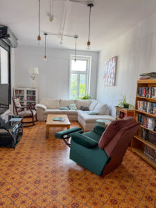 Today, the place is not only a hostel but also a community space. There’s a co-working area, multiple lounge spaces and kitchens, and a gorgeous café with fresh pastries, the perfect picnic foods, and a huge selection of board games. There’s also a bar with a great restaurant. The hostel holds regular events, and I watched a swing dancing class while I ate dinner. You can’t imagine how much fun these people are having.