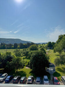 The neatest thing is how incorporated it is with nature. It sits on a park with a walking path just 10-15 minutes from the bay. There are trails and animals you can see on the way, and there’s a community garden that everyone’s welcome to use. I walked to the river both days of my stay, and on the way, I met wild woodland creatures like a marmot and chipmunk. On the walk, you also pass by the farm animals owned by the luxury hotel next door. They have cows, alpacas, chickens, rabbits—an animal-lover’s dream.