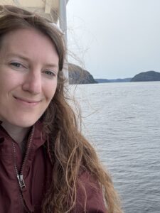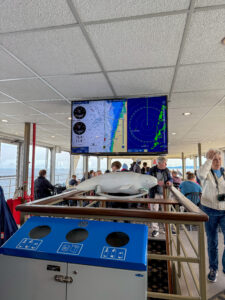 Passengers could choose between a zodiac or a big boat, and I was very happy to be warm on the big boat with access to snacks and bathrooms. And for three hours we searched for whales. Honestly, I would have been happy even if we hadn’t seen any because the scenery was so spectacular. I’ve never seen smoother water.